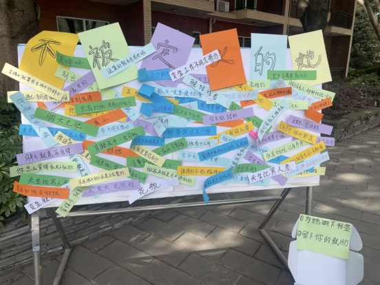 标签的存在是因为从未了解,不要因为偏见和标签而被阻碍前进的步伐。为引导同学们战胜自卑、增强自信、活出自我、不被定义,树立正确的价值观,营造温馨和谐的校园氛围,团委宣传部于3月16日在翠湖广场举办“温暖天府——不被定义的她”主题活动。天府学子们积极参与,在展板上留下属于自己的一份态度,希望每一位女性可以打破所有桎梏,尽情展示闪光模样。