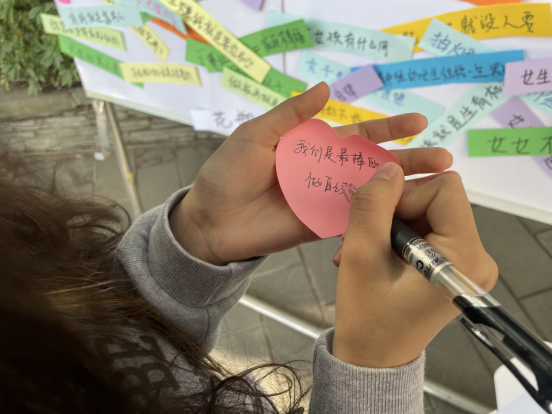 此次温暖天府活动不仅弘扬了新时代女性风尚,同时也激发了同学们维护女性权益的责任心,激励大家用爱与奋斗向社会传递温暖与力量,用实干笃行为青春留下最好的注脚。活动现场还有很多男同学的到来,他们用最美好的祝愿带给女生们无尽的力量和希望。文化与教育学院钱风云同学表示:“希望各位女生不再被条条框框和标签所定义,每时每刻都能拥有独立自信的力量,奔走在自己的热爱里闪闪发光。”