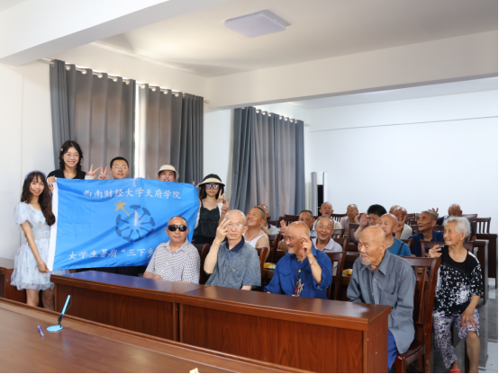 除此之外,西财天府学院的实践队员们还走进基层、服务群众,与当地村民心连心。实践队员在教学空闲时常常帮助当地的农民干农活,同时前往了当地的养老院,了解到养老院内的老人长期缺乏亲人陪伴。于是实践队员们细心询问老人的衣食住行并为他们购买必备的生活物资和慰问品,希望能为老人们尽到一点微薄之力。