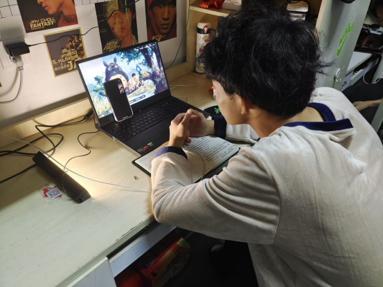 天府学子与家中老人视频通话