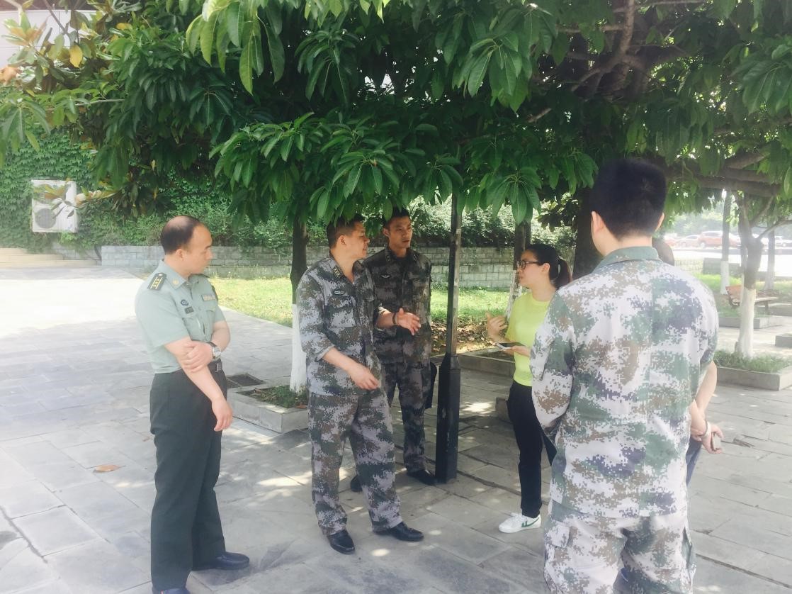 2017年5月25日,绵阳市涪城区武装部部长梁博、政委马啸啸一行来到我校绵阳校区指导我校2017年大学生征兵入伍宣传工作。学校校卫队副队长姚斌、芳华苑学生党支部书记颜芳和负责绵阳校区征兵工作的车学文接待陪同。